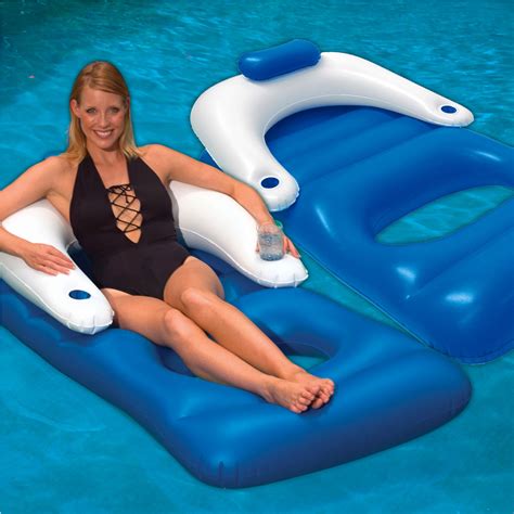 10 best in pool lounge chairs: This adjustable chaise lounge is ready to keep you comfortable while sleeping, sunbathing or reading, with 4 reclining positions available to meet your personalized needs for more comfortable backrest. Intex inflatable floating lounge pool recliner lounger chair with cup holders. Source high quality products in hundreds of categories wholesale direct from china. Why do i need a pool lounge chair? Our chair float is the perfect pool inflatable to help you stay afloat while you relax under the sun. Pool floats and floating lounge chairs from in the swim can help define your swimming pool the way furniture can define your living room. Intex sit n float inflatable lounge. Pool floats are excellent for laidback enjoyment during summers in the pool. Swimline sunchaser padded floating luxury chair pool lounger. These simple pieces of inflatable furniture are incredibly versatile, providing a perfect space for napping, tanning poolmaster floating chaise lounge chair. Floating recliner inflatable lounge, 71in x 53in. Trc recreation adjustable floating pool chair.